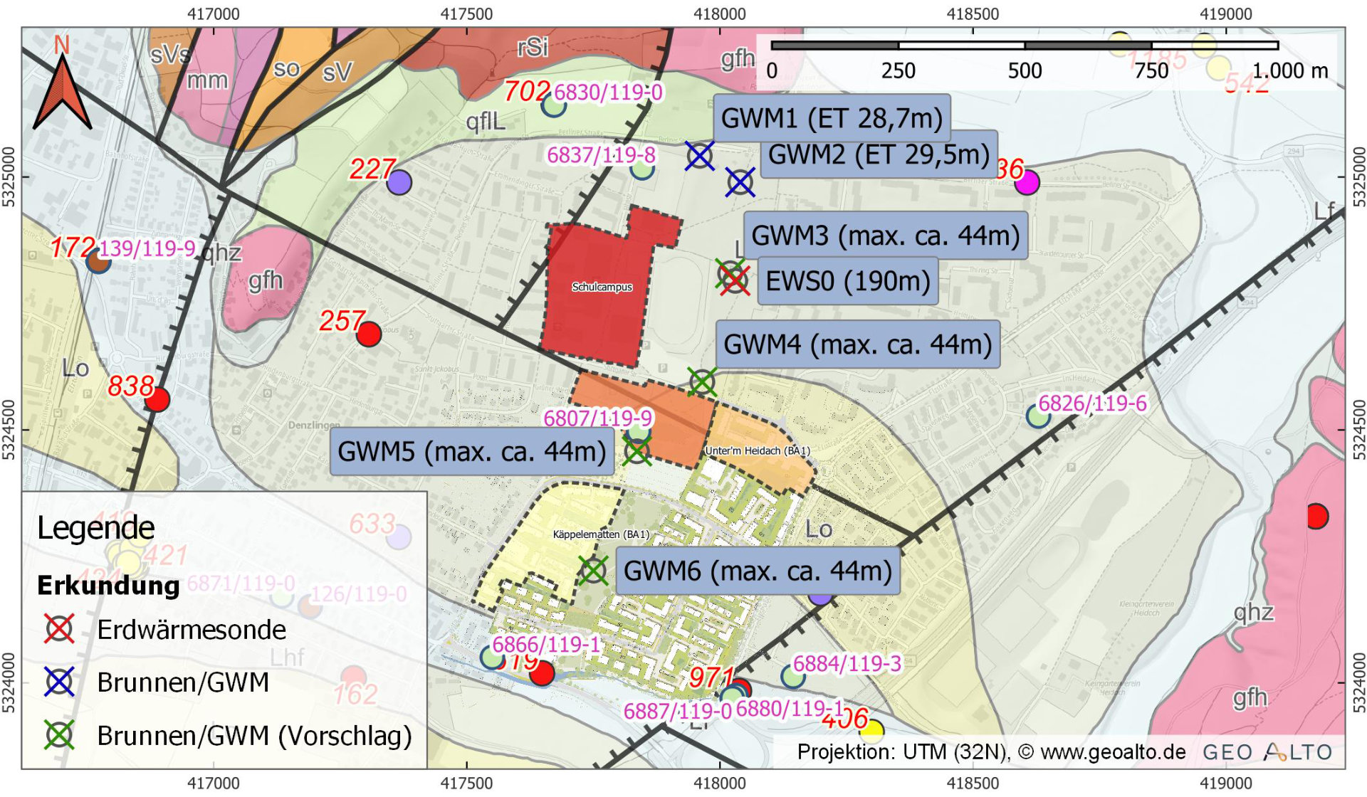 Die GeoAlto GmbH wurde seitens der LBBW Immobilien Kommunalentwicklung GmbH (KE) mit der fachplanerischen Betreuung der Erschließung oberflächennaher Geothermie am Standort über Erdwärmesonden und/oder Grundwasser beauftragt. Im Rahmen der Vor- und Entwurfsplanung sowie umfangreicher Erkundungsmaßnahmen wurden die geothermischen Eigenschaften des Untergrundes am Standort sowie die Grundwasserverhältnisse untersucht und als Basis für das Gesamtkonzept bewertet.