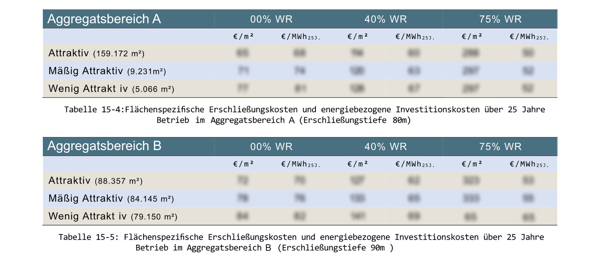 Für eine quantitative Potentialermittlung (im Sinne des tatsächlich technisch gewinnbaren Potentials) wurden verschiedene innovative Methoden entwickelt: zur Verwertung und einfachen Skalierung der ermittelten Potentiale wurden Entzugsleistung, langfristig gewinnbare Energiemenge und auch Kosten in Kennwerte pro m² Fläche umgerechnet. Die thermischen Simulationen großer Erdwärmesondenfelder wurden auf die besonderen Anforderungen für die Grundlastdeckung von Heizkraftwerken angepasst. Eine Optimierung des langfristigen Ertrages durch Wärmerückführung im Sommer (saisonale Energiespeicherung im Untergrund) wurde in allen Szenarien als Option mitbetrachtet.