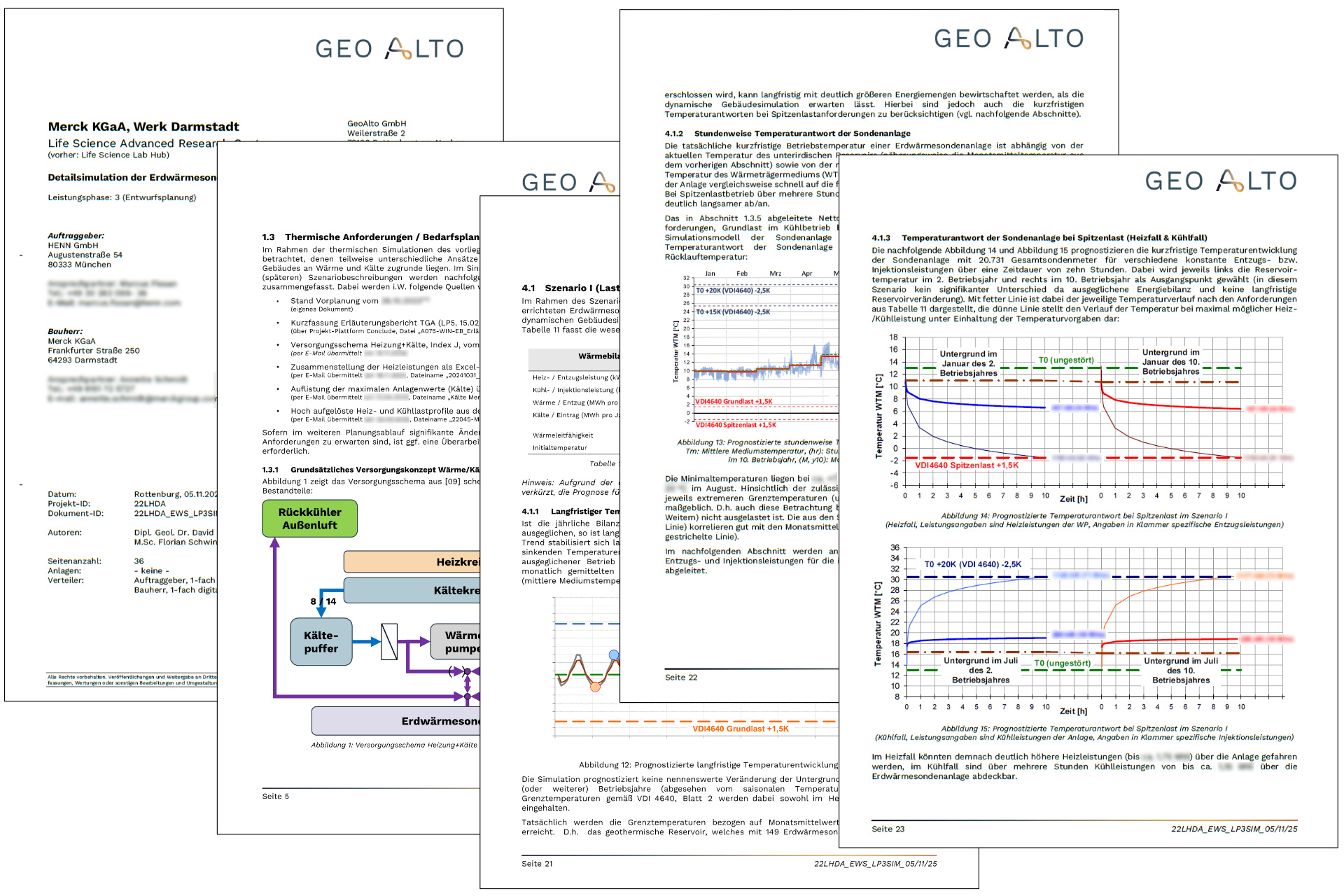 Die GeoAlto GmbH ist für alle planerischen Leistungsphasen im Zusammenhang mit der Erschließung oberflächennaher Geothermie über Erdwärmesonden verantwortlich. Von der geothermischen Grundlagenermittlung über Konzeption, Simulation, Ausschreibung und Vergabe bis zu fachlichen Bauüberwachung im Zuge der Realisierung.